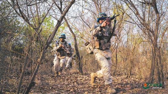 任务期间,维和步兵营官兵开展紧急出动演练。王昆博摄 南苏丹朱巴,这片靠近赤道、常年被骄阳炙烤的土地,热切期盼和平。