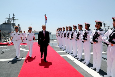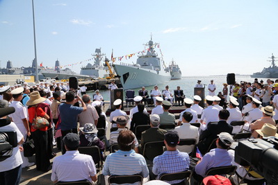 沈金龙少将在欢迎仪式上指出,中国海军舰艇编队访问圣迭戈,是为了加强两国海军关系,推动两军关系健康稳定发展,为构建中美新型大国关系和新型军事关系提供重要支撑。