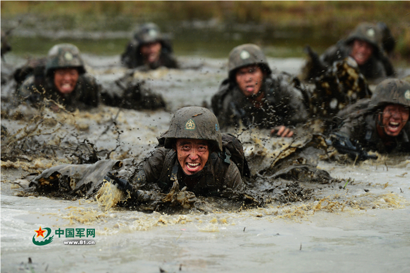高清:解放军两栖战车在干扰弹掩护下抢滩登...