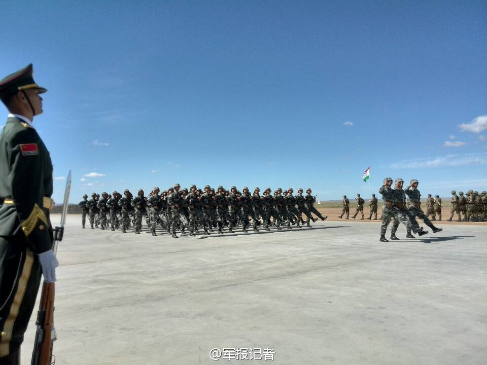 高清:上合军演举行开始仪式 各国军人接受检阅