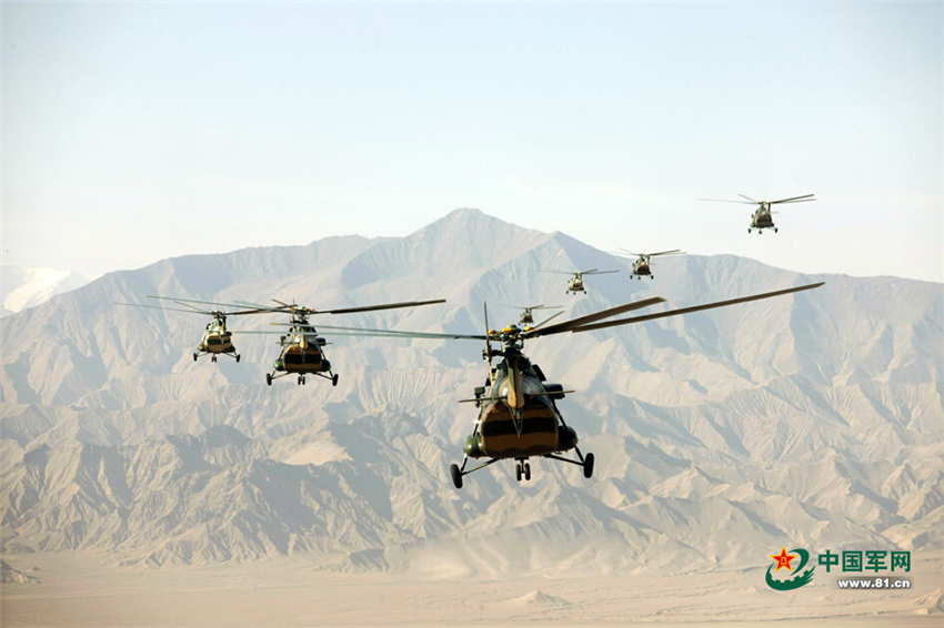 高清:新疆军区某陆航旅直升机大机群千里征...