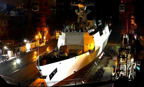 资料图:第20艘054A护卫舰在夜间下水