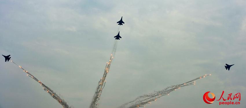 人民网珠海11月12日电 (记者 翁奇羽)昨天,珠海航展正式开幕,在航展开幕的第一天,近年来屡次与中国空军传出绯闻的俄罗斯苏-35战斗机在现场进行了飞行表演,苏-35战机在启动后仅滑跑了很短的距离即大角度拉起冲上天空,开始了精彩的飞行表演。在飞行中,苏-35战机多次作出了眼镜蛇、吊钟、落叶飘等高难度复杂机动,引得现场观众发出阵阵惊叹声。