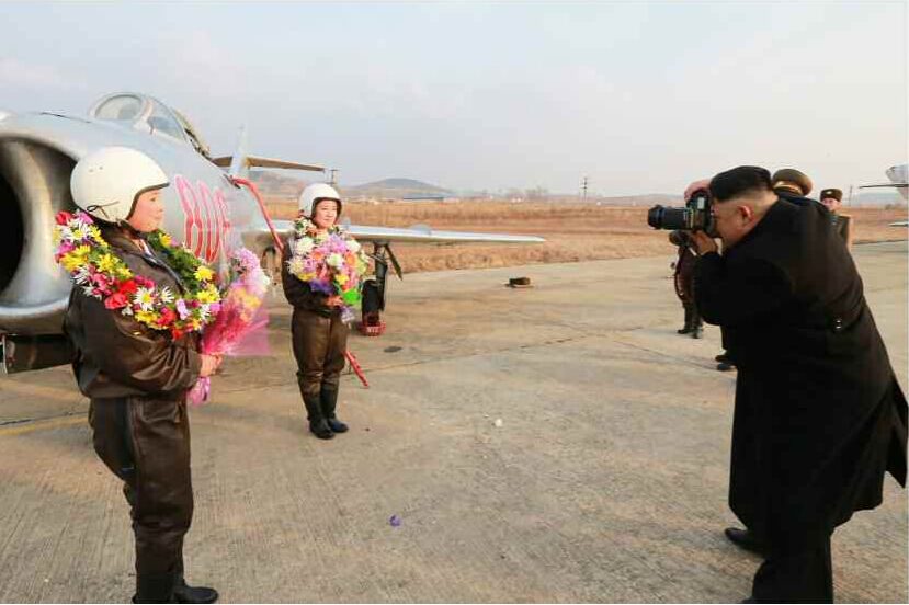 高清:金正恩亲自为朝空军女歼击机飞行员拍...