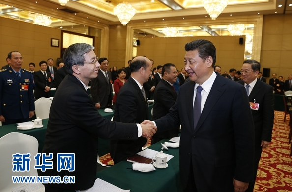 3月4日,中共中央总书记、国家主席、中央军委主席习近平看望出席全国政协十二届三次会议的民革、台盟、台联委员,听取委员们的意见和建议,并发表重要讲话。中共中央政治局常委、全国政协主席俞正声参加了看望和讨论。新华社记者 鞠鹏 摄