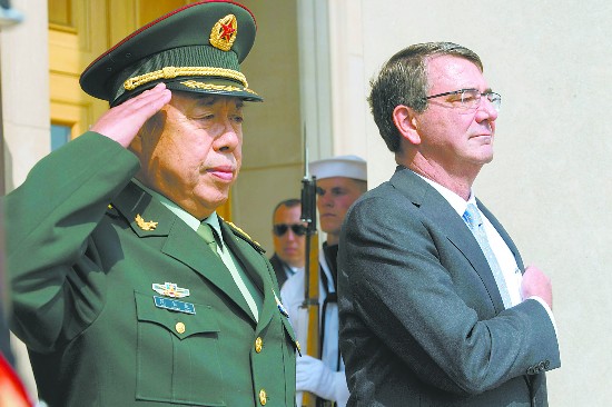 11日,范长龙在华盛顿与美国国防部长卡特举行了会谈。在会谈中,范长龙提出,中美两军要努力构建“互信、合作、不冲突、可持续”的新型军事关系。并希望双方共同努力,进一步密切交往,增进战略互信,切实加强务实合作,有效管控危机和风险。