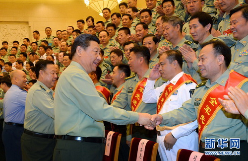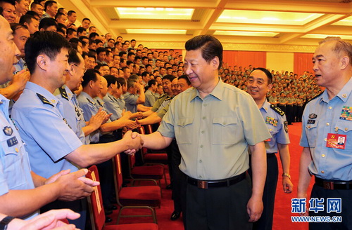 2014年6月17日,中共中央总书记、国家主席、中央军委主席习近平在北京接见空军第十二次党代会代表。 新华社记者 李刚 摄
