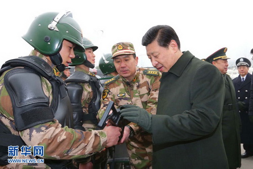 2013年1月29日,习近平在武警北京市总队十三支队察看部队装备。新华社记者 李刚 摄