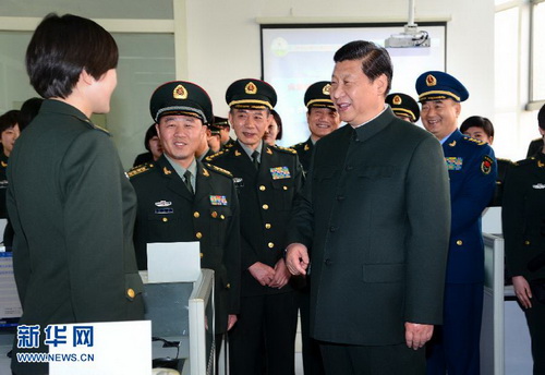 4日下午,习近平来到兰州军区机关,接见了驻兰州部队师以上领导干部,并看望军区某通信团执勤机房正在值班的官兵。