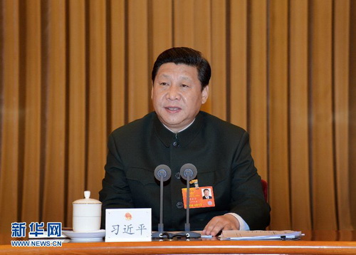 2013年3月11日,习近平出席十二届全国人大一次会议解放军代表团全体会议并发表重要讲话。 新华社记者 李刚 摄