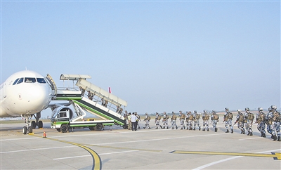 上图:海军陆特战部队通过民用航空进行兵力快速投送。 高毅摄