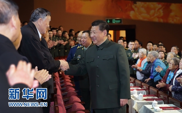 1月28日,中央军委慰问驻京部队老干部迎新春文艺演出在北京举行。中共中央总书记、国家主席、中央军委主席习近平出席,向在场的军队老同志,向全军离退休老干部,致以新春问候和祝福。新华社记者 李刚 摄