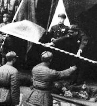 1949年1月,一连被授予连旗时的老照片(来源于该团团史馆)