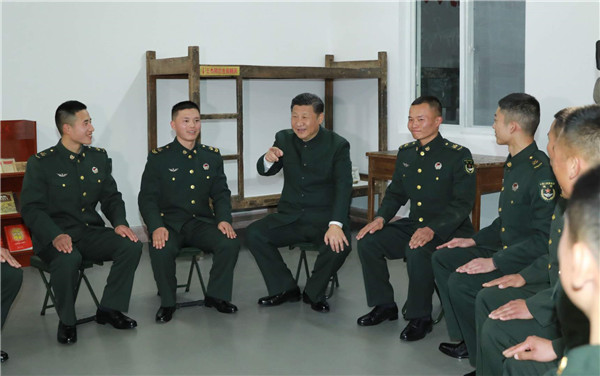 13日下午,习近平来到第71集团军某旅王杰生前所在连,视察连队荣誉室,走进王杰班与战士座谈。他充分肯定连队尊崇英雄、学习英雄的做法,指出一不怕苦、二不怕死精神过去是、现在是、将来永远是我们宝贵的精神财富,广大官兵要努力学习践行“两不怕”精神,争做新时代王杰式的好战士。新华社记者李刚 摄