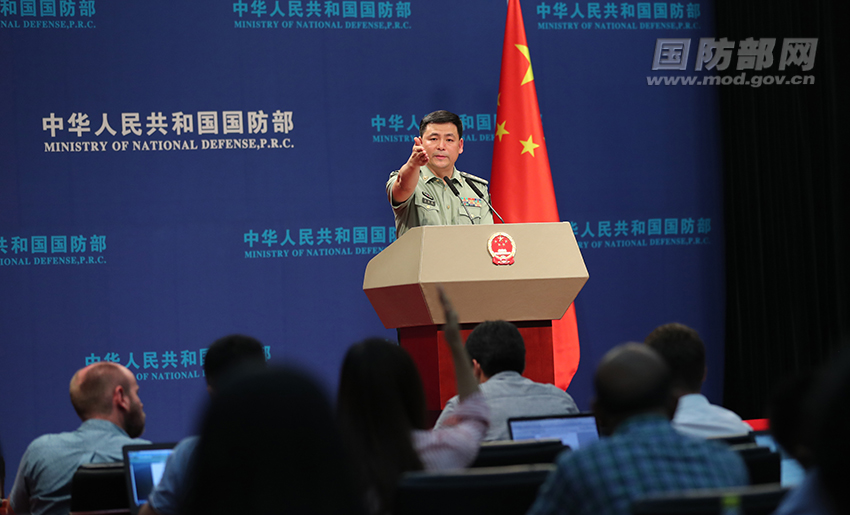 2018年7月26日下午,国防部召开7月例行记者会,国防部新闻局副局长、国防部新闻发言人任国强大校回答记者提问。李晓伟 摄