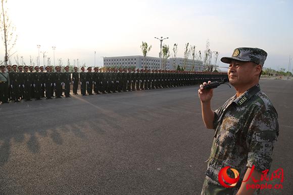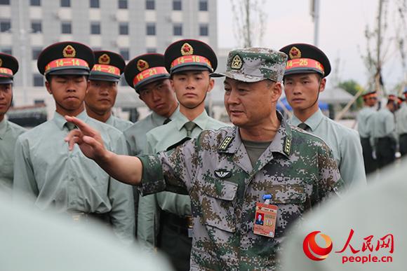 潘守勇正在指导方队训练。孙雪松摄