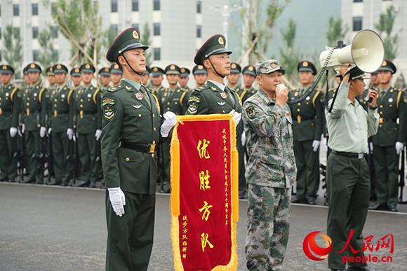 在徒步方指的考核中取得优异的成绩,潘守勇为大家作动员。李赞摄