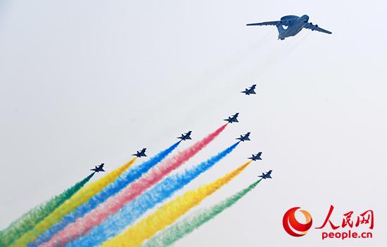 一抹抹航迹,如彩练当空,五彩绚烂;一架架战鹰,如箭矢疾驰,直刺苍穹。