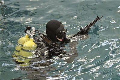 该部队训练基地内,建有一个25米长的水池,作为水下训练场地。“战斗蛙人”在此进行下潜、格斗、射击等训练。