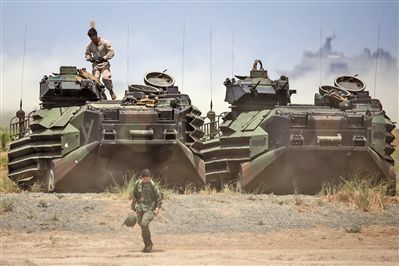 美国希望通过联合军演稳固美菲军事关系,图为2019年美菲“肩并肩”联合军演资料图