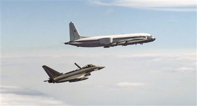 北约台风-2000战斗机(下)跟踪并拦截俄军伊尔-22PP电子干扰飞机(上)