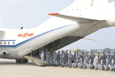 参加“海上登陆”项目的中方参赛队出征登机。肖勇利摄
