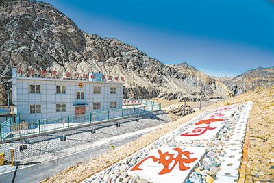 官兵精心拼成的“忠心向党”文化石是昌马河哨所营区一个亮点。