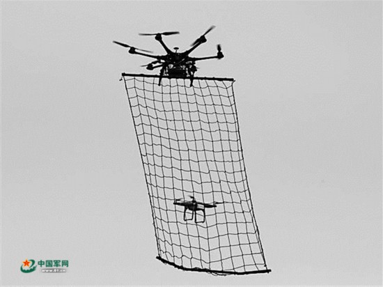 图为无人机捕捉网在捕捉目标。