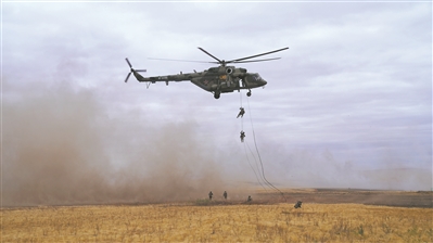 9月17日,参演部队特战分队实施索降渗透至“敌”后。新华社记者 梅世雄 摄