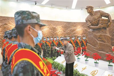 心中有榜样,前进有力量。走出纪念馆,身披绶带、胸戴红花的新兵们在鲜红的“传承红色基因、争当英雄传人”的条幅上郑重地签下了自己的名字。随后,他们面向八一军旗庄严宣誓:“英勇顽强、不怕牺牲,舍身为国、争取胜利!”铮铮誓言,响彻纪念馆上空。(杨振 、孙臻)
