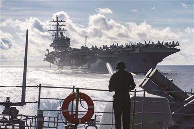 美海军启动“制胜项目”以响应国防部推动的“联合全域指挥控制”概念。图为演习中的美海军航母