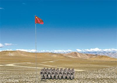 10月1日,西藏军区某旅官兵举行升国旗仪式。王述东摄