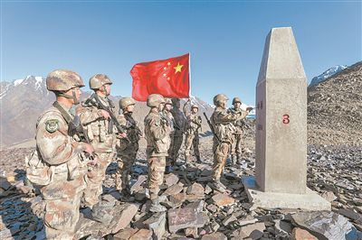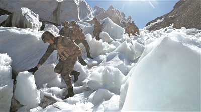 国庆佳节,驻守在海拔5000多米的神仙湾边防连官兵坚守战位,执行巡逻任务。韩强摄