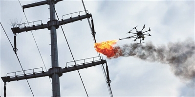 俄军无人机喷火系统与民用型类似,图为民用无人机喷火系统