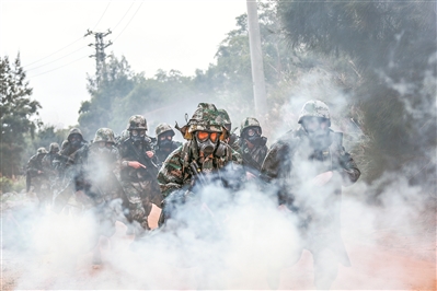 恢复编队没多久,道路侦察组又传回“生化警报”。“全连注意,佩戴防毒面具,开启三防系统,增大车距加速通过!”连长唐宇航果断下达命令。通过“染毒地段”后,官兵除完成人员洗消操作外,还依托现有装备器材,建立“喷浴”式洗消站,对武器装备进行洗消。