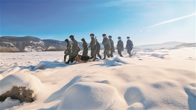 此时的界江已被冰雪覆盖,最低温度达零下25摄氏度。凛冽的寒风中,“北极女子民兵班”的队员们与边防官兵一起踏雪巡边。
