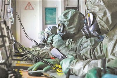 “敌”情解除后,考核组又下达多个特情,官兵接连展开输送兵力、防化学武器袭击、舰艇损管等实战化课目考核。