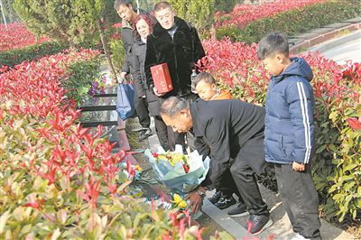 元旦前夕,河南省滑县烈士陵园,青松环绕,柳枝轻摆,哀乐低回。一场隆重而特别的烈士寻亲祭扫仪式正在举行。60岁的杨平安携一家7口缓缓拾级而上,小心翼翼从怀中掏出母亲的照片,摆放在崔保珍烈士墓前,敬上一杯家乡酒,撒上一抔家乡土。