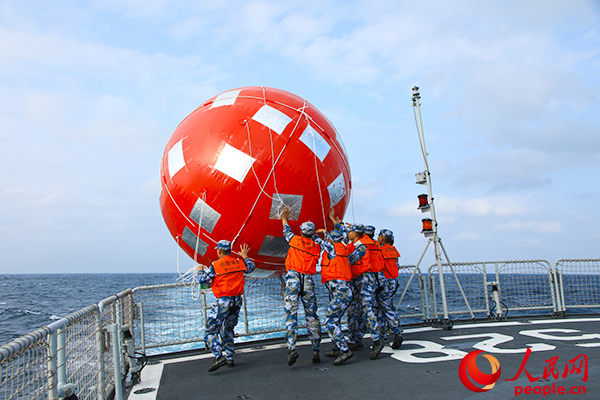投放浮体靶。薛成清摄