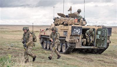 英国士兵参加军事演习。