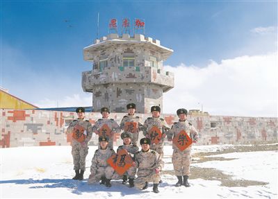 图①:日土机务站官兵在海拔5000多米高原向全国人民拜年。