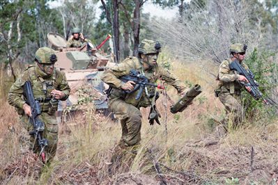 美国、澳大利亚、新西兰等国士兵组成的联合特遣队,在澳大利亚参加军事演习。