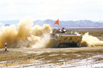图①:“雷锋四班”战士注重立足岗位学雷锋,勇当军事训练排头兵。图为在国际赛事中该班战士驾驶步战车突击的场景。