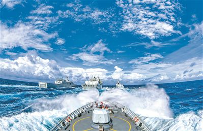 看着舰艉奔腾的尾流,海军焦作舰航海长张玲的胸膛里充盈着豪迈。