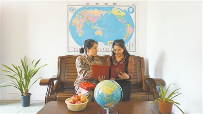 杨洪悦(左)向婆婆展示自己的获奖证书 黄 悦摄