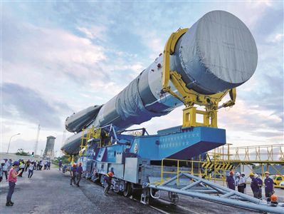 CSG系列卫星可用于海上监视、侦察、军事测绘等用途,图为准备运往欧洲宇航中心的CSG-1卫星及运载火箭。
