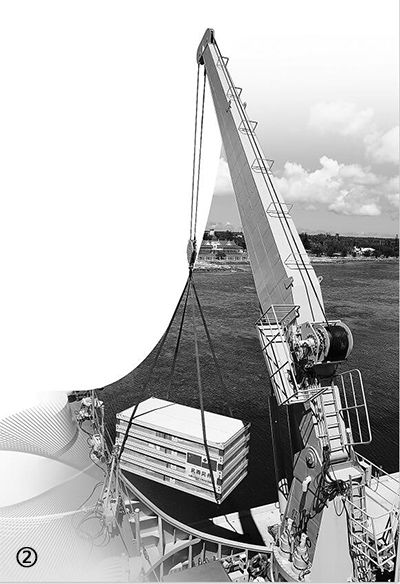 装好物资是第一步,抵达汤加后安全高效卸载才是关键。所有物资都需要用吊机吊运到码头。换句话说,吊机是卸载的重中之重。卸载前,我把帆缆班班长刘兆强叫到身边,问他有没有信心,他拍着胸脯说:“当然有!”