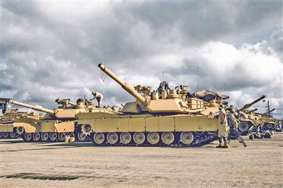美军士兵对“艾布拉姆斯”主战坦克进行维护与检查。
