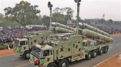 印度在阅兵中展示“布拉莫斯”超音速反舰导弹。