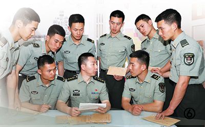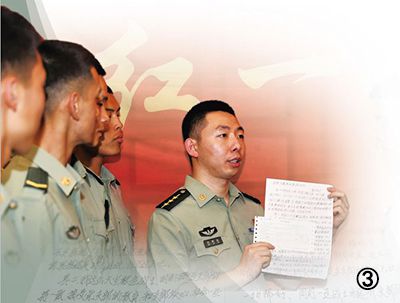 图⑥:连队官兵在学习室学习刘海峰来信的场景。杨五阳摄